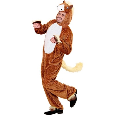 Kostým - Kůň obsahuje: overal se zapínáním na zip, ocas a hlavu jako čepici s otevřenou pusou. Kostým je vhodný jak pro muže, tak pro ženy. Velikost M/L. Ideální na karneval, masopust, párty nebo tématické akce.
