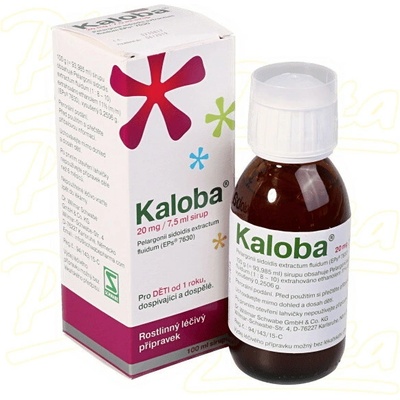 Název přípravku: Kaloba 20mg / 7,5 ml sirup Léčivá látka: Pelargonii sidoidis extractum fluidum (1 : 8 – 10) extrahováno ethanolem 11% (m/m) (EPs 7630), vysušený 1. Co je Kaloba 20 mg / 7,5 ml sirup a k čemu se používá (léčba akutního zánětu průdušek) Kaloba 20 mg /...