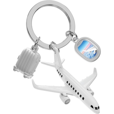 Klíčenka se 3 cestovními přívěsky - letadlo, kufr, glóbus. Kombinace modré a stříbrné barvy. • rozměry: 85 x 35 x 5 mm• hmotnost: 27 g• motiv cestování - letadlo, kufr, glóbus• vhodná i jako dárek
