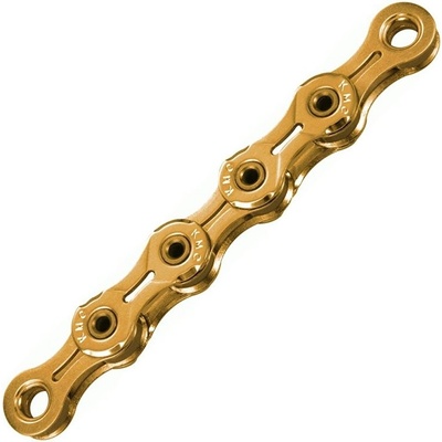 11ti rychlostní řetěz KMC X11 Gold, povchová úprava Ti-N, 118 článků, nesměrový. - pro Shimano, Sram, Campagnolo systémy - 1/2" X 11/128"" - šířka: 5,65 mm - 118 článků - hmotnost: 252 g - včetně rychlospojky - baleno v krabičce