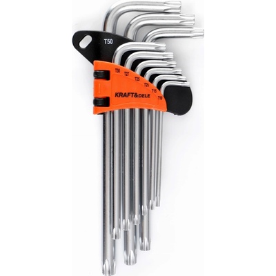 Sada dlouhých imbusů torx T10-T50, 9ks KD11933 KRAFT&DELE Sada dlouhých torxových klíčů je určena pro práci se šrouby typu TORX, včetně bezpečnostních variant s otvorem. Díky...