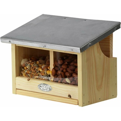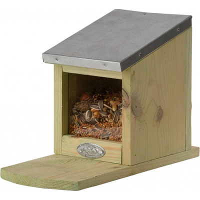 Dřevěné krmítko se zinkovou stříškou a průhlednou přední stěnou z plexiskla. Vhodné jako krmítko pro veverky. V přírodním barevném provedení dřeva, se stříbrnou barvou stříšky,...