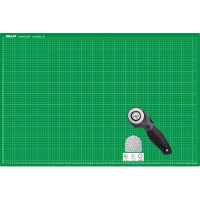 Tato sada obsahuje zelenou řezací podložku 9Z203 formátu A1, ruční řezací kolečko KW-triO 3804 a 3 náhradní 45mm řezací kotouče pro ruční řezačku KWtriO 3804. Řezací podložka Zelená řezací podložka KW-triO pro formát A1 s rozměry 60 × 90 cm slouží jako pevný podklad...