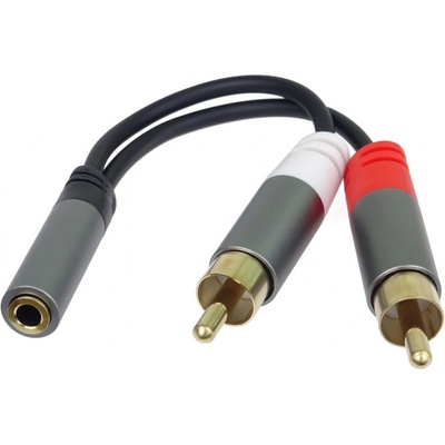 Kvalitní audio kabel s konektory jack 3,5mm a cinch (RCA).; Použití: Pro propojení zařízení se stereofonním zvukovým signálem.; Konektory: stereo jack3,5M - 2x cinch(M),...