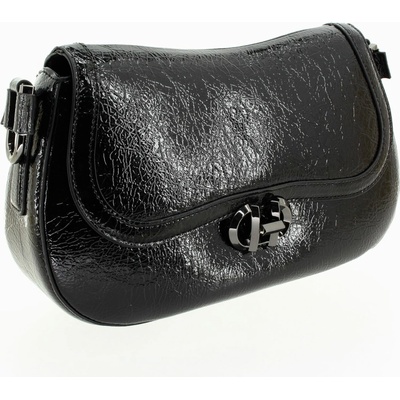 Dámská kabelka střední velikosti v černém lakovaném provedení se zipovými kapsami.