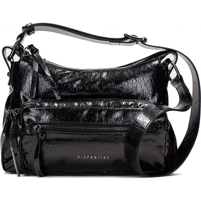 Dámská kabelka Hispanitas v černé barvě s jedním nastavitelným popruhem přes rameno. Na přední straně kabelky jsou dvě kapsy na zip. Kabelka se uzavírá na zip. Uvnitř kabelky...
