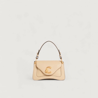 Materiál: kůže Rozměry: délka: 26 cm, šířka: 7 cm, výška: 13 cm Zapínání na otočný zámek s logem C-Me Barva kovu: light gold 1 vnitřní prostor malá vnitřní kapsa Kapsa na zadní...