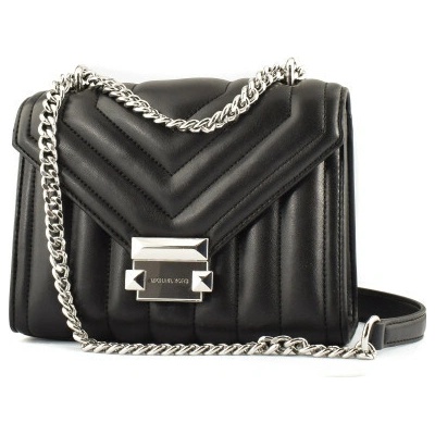 Michael Kors kožená kabelka Jet Set chain crossbody silver černá