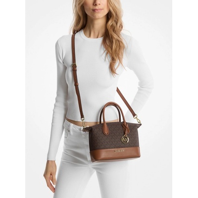 Vanilla monogram v kombinaci se saffiano kůží Kabelka se dá zavřít na zip Nastavitelná ucha Se zlatými doplňky Michael Kors Přívěsek MK na uchu kabelky - dá se odepnout Uvnitř...