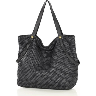 Mazzini Marco Velká tkaná kožená vintage shopper taška černá