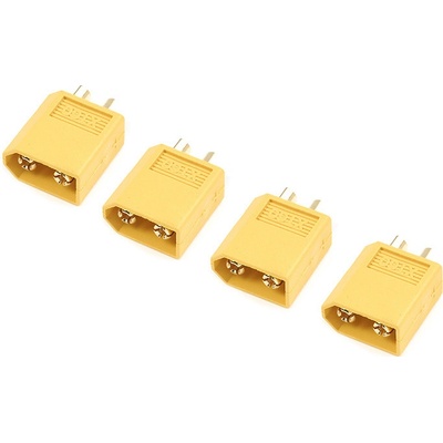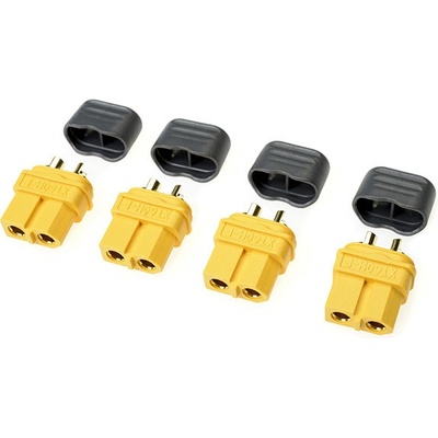 Zlacený konektor XT-60 s plastovým krytem samec. Balení obsahuje 4 kusy.