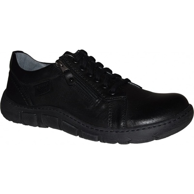 Pánská kožená vycházková obuv Kacper má svršek v černém odstínu, který se snadno kombinuje. Má šněrování, ale i šikmý zip na boku pro snadnější obouvání. Obuv je pohodlná díky...