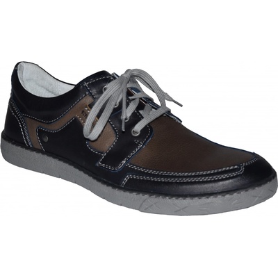 Pánská volnočasová obuv Kacper na šněrování má atraktivní vzhled skrze barevné provedení s prošíváním. Díky měkké stélce, flexibilní podešvi a kožené podšívce se jedná o velice pohodlnou obuv. Stélka má perforování pro lepší klima chodidla. Obuv je vhodná pro běžné...