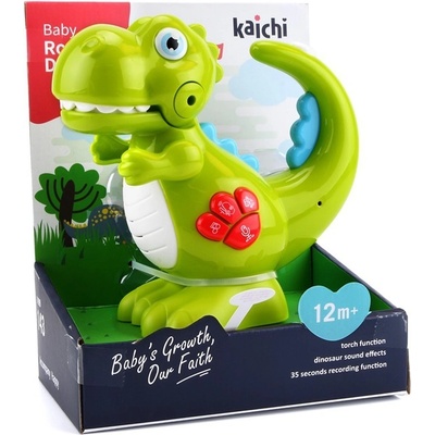 KAICHI Baby opakující dinosaurus na baterie, 12m+ Baby dinosaurus na baterie. Dinosaurus svítí, vydává zvuky a lze nahrávat hlasy a melodie, které poté přehrává. Napájení na 3 AAA baterie (jsou součástí). Rozměry dinosaura cca 16 x 16,5 x 8,5 cm. Rozměry balení cca...