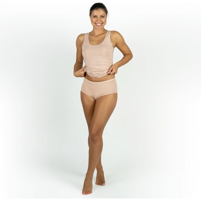 Kalhotky klasického střihu s úzkým bokem, dámské bezešvé prádlo. Pasový kraj je zesílený a zapravený bezešvým způsobem. V nohavičkách je zašitá úzká pruženka. Kalhotky jsou...