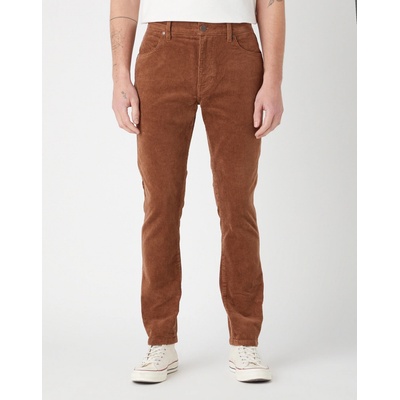 Hnědé manšestrové kalhoty LARSTON s pěti kapsami, zapínáním na zip v úzkém stiřhu SLIM FIT, který se postupně zužuje. V oblasti zapínání vyniká kovový knoflík s logem WRANGLER....