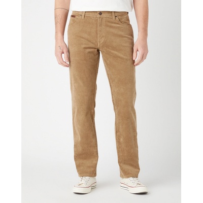 Světle hnědé (béžové) manšestrové kalhoty v pohodlném a moderním rovném střihu Greensboro. Kalhoty se zapínáním na zip a kovovým knoflíkem s logem Wrangler. Kalhoty s pěti...
