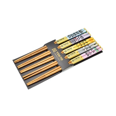 Sada 5 párů jídelních hůlek z lakovaného dřeva s japonskou kaligrafií. Tato elegantní sada od ToKYO Design Studio obsahuje 5 párů hůlek z lakovaného dřeva, jejichž horní části...