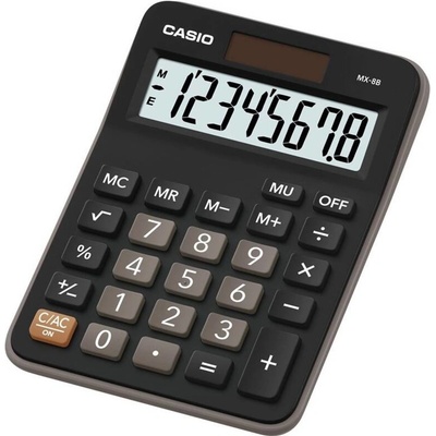 Stolní kalkulačka s kovovým štítkem pro větší odolnost. Velký 8mi místný naklopený displej, výpočet procent, výpočet odmocniny, označení 3číslicové čárky, duální napájení...