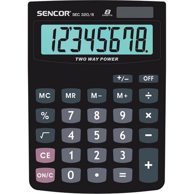 12místný displej, procenta, korektura posledního čísla, dvojitá nula, duální napájení. Provedení: 124 × 102 × 25 mm