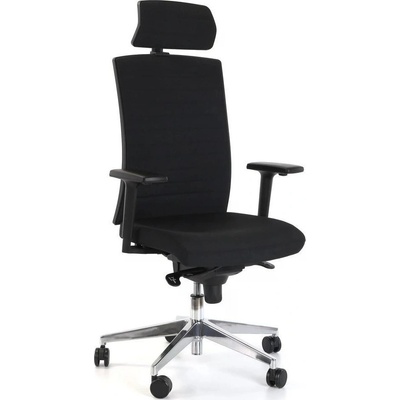 Pojízdná židle do kanceláře. Vysoký opěrák, synchronní mechanika SYS s bočním nastavením tuhosti, nastavení výšky opěráku UP-DOWN, kříž nylon černý, kolečka na koberce - černá...