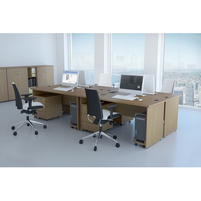 15 prvků v sestavě. 4x BKA16 12 - Kancelářský stůl (160x70 cm) 4x KS30 12 - Mobilní kontejner 4x KPC01 12 - Podstavec pod PC 2x S383 12 - Skříň s dveřmi (80x38,5x113 cm) 1x S340...