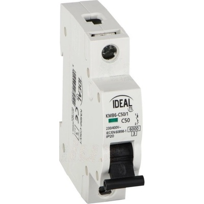 Jistič jednopólový, s vypínací charakteristikou C s jmenovitým proudem 50A k ochraně el. obvodů a spotřebičů v obvodech s proudovými rázy ( obvody s indukční zátěží a motory ), shoda s normami EN60898-1 / IEC60898-1.Charakteristika „C”: slouží k ochraně el. obvodů a...