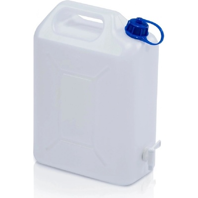 Plastový kanystr s výpustným kohoutkem o objemu 10l včetně víčka s těsněním, vyrobený z nebarveného polyethylenu HDPE, vhodný na potraviny.