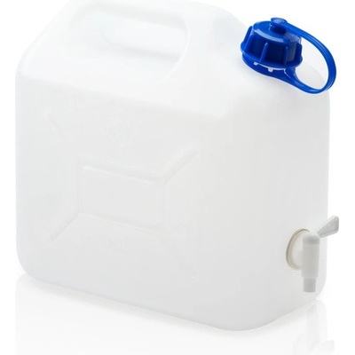 Plastový kanystr na vodu s kovovým kohoutkem. Objem 10 litrů. Kanystr není určen na pitnou vodu Rozměry: Výška (s kohoutkem): 36cm Šířka: 18,5 cm (strana s nálepkou) Hloubka:...