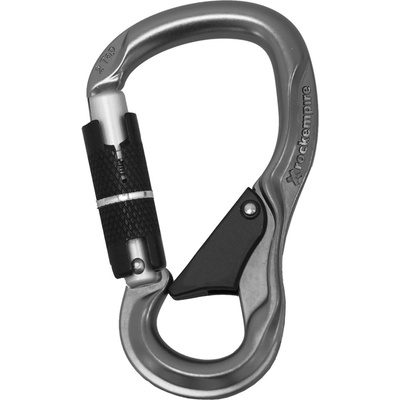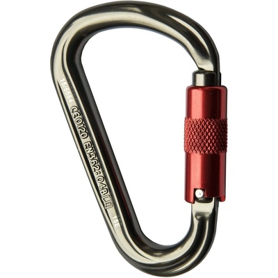Odolná karabina ve tvaru HMS, která má v nejvíce namáhaném místě ocelovou vložku, díky které je karabina mnohem odolnější a bezpečnější. Trojčinný pojistný zámek - Triple lock....