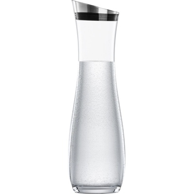 Karafa na vodu ze skla a z Cromarganové nerezové oceli. - Víčko karafu nejenom automaticky uzavírá, ale také díky sítku uvnitř zadrží kostky ledu i kousky ovoce při nalévání...