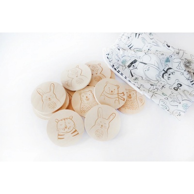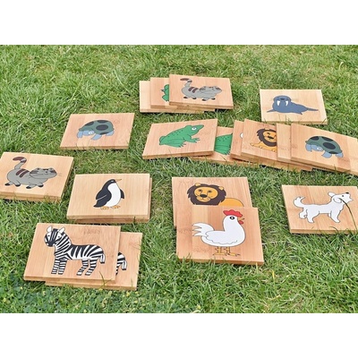 Pexeso je vyrobeno z FSC dřeva - borovice. Venkovní i vnitřní použítí. Dodáváno s přepravní taškou pro jednoduchou přepravu hry. Obrázky se zvířátky jsou na destičkách...