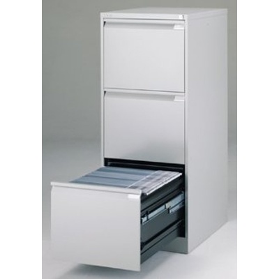 Třízásuvkové kovové kartotéky pro dokumenty nebo závěsné pořadače formátu A4 nebo Foolscap, šířka 413 nebo 470, výška 1016, hloubka 622 mm, centrální zámek, různé barvy. V barvě...