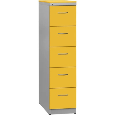 Pro ukládání dokumentů A4. Svařovaný korpus, 90% výsuv zásuvek. Centrální cylindrický zámek. Povrchová úprava práškovým lakem, na výběr 16 barevných odstínů. Rozměry v. 1568 x...