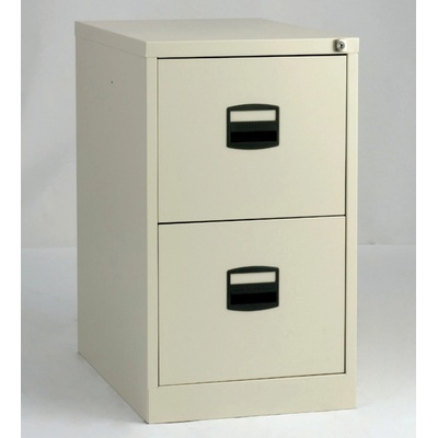 Dvouzásuvkové kovové kartotéky pro dokumenty nebo závěsné pořadače formátu A4 nebo Foolscap, šířka 413 nebo 470, výška 711, hloubka 622 mm, centrální zámek, různé barvy.