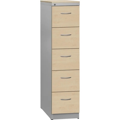 Kovová kartotéka pro formát A4 pětizásuvková. Výška 1628 x šířka 405 x hloubka 623 mm. Plný výsuv zásuvek, blokace proti vysunutí více zásuvek najednou. V provedení RAL 7035...
