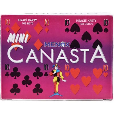 Klasické canastové karty v mini provedení - 108 karet. Baleno v papírové krabičce. Canasta je velice známá společenská hra, oblíbená napříč generacemi. Karty hrají rády děti,...