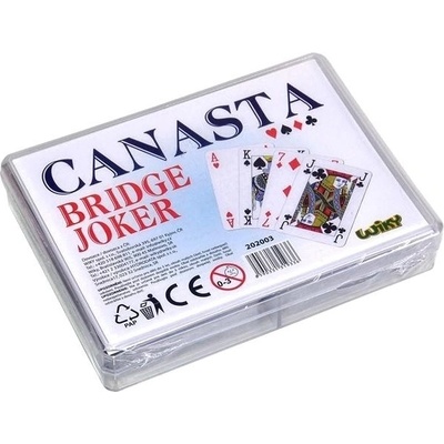 Klasické karty kanasta. Baleno v praktické plastové krabičce. Rozměry balení 12,5x9,5x2 cm. Výrobek není hračka.