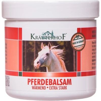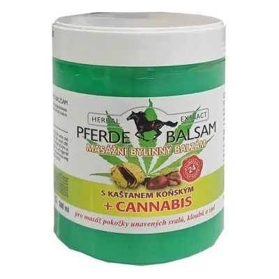 Váha produktu 0,5 kg Pferde Balsam kaštan koňský gel s cannabis je masážní gel obsahující 23 léčivých bylin (jako např. Jírovec maďal, borovice lesní, jalovec obecný, řepík...