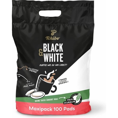 Tchibo Black ’N White SENSEO pody 100ks Vychutnejte si Tchibo Black 'N White jako silnou černou kávu nebo v jemné variantě s mlékem. Je zkomponována z vybraných zrn kávy Arabica a Robusta pocházejících z těch nejlepších kávových farem. Díky šetrnému 3x delšímu pražení...