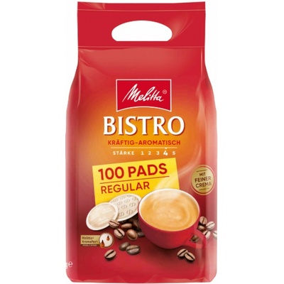 Melitta Bistro Regular SENSEO pody 100ks Melitta Bistro Regular pody jsou plněny směsí kávy z pečlivě vybraných a stále kontrolovaných oblastí. Výsledkem je středně silná káva s hustou cremou. Pody jsou baleny samostatně po jednom kuse v ochranné atmosféře. Balení:...