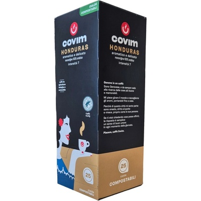 Italská káva Covim Honduras 100% Arabica v E.S.E. tabletách. Covim Honduras je jednodruhová výběrová káva s jemnou chutí, vyváženou aciditou a tóny oříšků a kakaa. Jedná se o vyváženou a elegantní kávu s jemnou aciditou, středním tělem a dlouhotrvající...