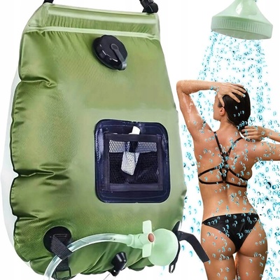 Pevný vak o objemu 20l a hadicí se sprchou sloužící jako přenosná kempingová solární sprcha. Vak jednoduše naplníte vodou, necháte ho vystavený slunečnímu záření a zhruba za 2...