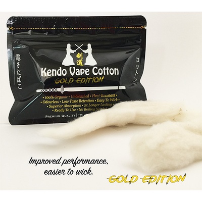 Kvalitní 100% organická japonská vata Kendo Cotton Gold Edition je pěstována bez pesticidů, ani není dodatečně bělena. Díky svým unikátní vlastnostem je odolná vůči teplu a má menší tendenci k přepalování. Skvěle absorbuje e-liquid i s vysokým poměrem rostlinného...