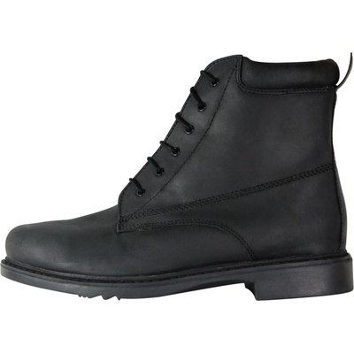 Kožená šněrovací pérka, vzadu se zipem, gumová podrážka. Barva černá. Podrážka hladká, bez zarážky na třmen.