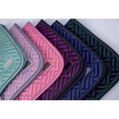 Saténová podsedlová dečka s novým vzorem prošívání v sadě s náušníky. Ozdobná kroucená šňůra s lurexem a plíšek s logem Kentaur. Spodní strana z rychleschnoucí HI-TECH síťoviny.