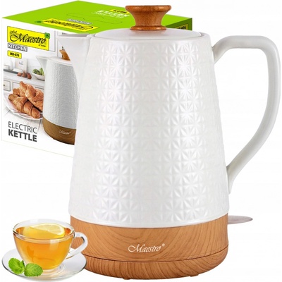 Elektrická varná konvice 1,8 l 1800 W MR-076 MAESTRO Maestro - Doba odeslání (v hodinách): 24 - Ukazatel hladiny vody: Ano - Objem nádržky na vodu: 1,8 l - Barva produktu: Bílá, Dřevěná - Typ ovládání: Tlačítka - Schované topné těleso: Ano - Materiál pouzdra:...