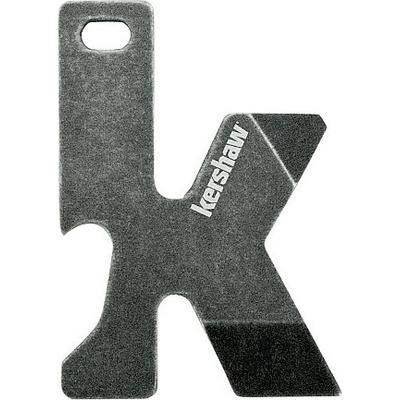Nástroj ve tvaru písmene K Kershaw K-Tool z nerezavějící oceli 3CR13 s povrchovou úpravou černým oxidem. Je vybaven otvírákem na láhve, plochým šroubovákem a dírkou na klíče.