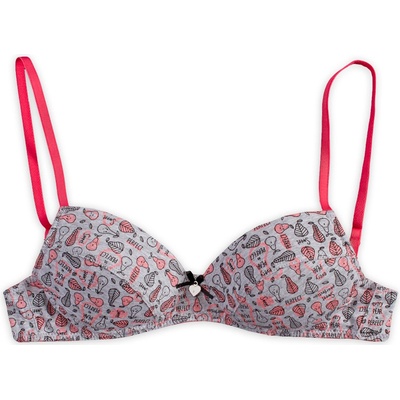 Dívčí podprsenka s jemným potiskem. Mírně vyztužené košíčky, bez kostic. Ramínka s nastavitelnou délkou. Vzadu zapínání na háček.