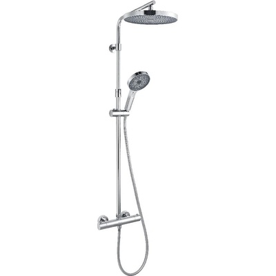 Sprchový set Oudee obsahuje nástěnnou termostatickou baterii s přepínačem, rozteč 150 mm, hlavovou sprchu, průměr 26 cm, 1 proud, sprchovou hlavici, průměr 13 cm, 3 proudy, sprchovou tyč s posuvným držákem sprchy a sprchovou hadici 150 cm, povrchová úprava chrom....